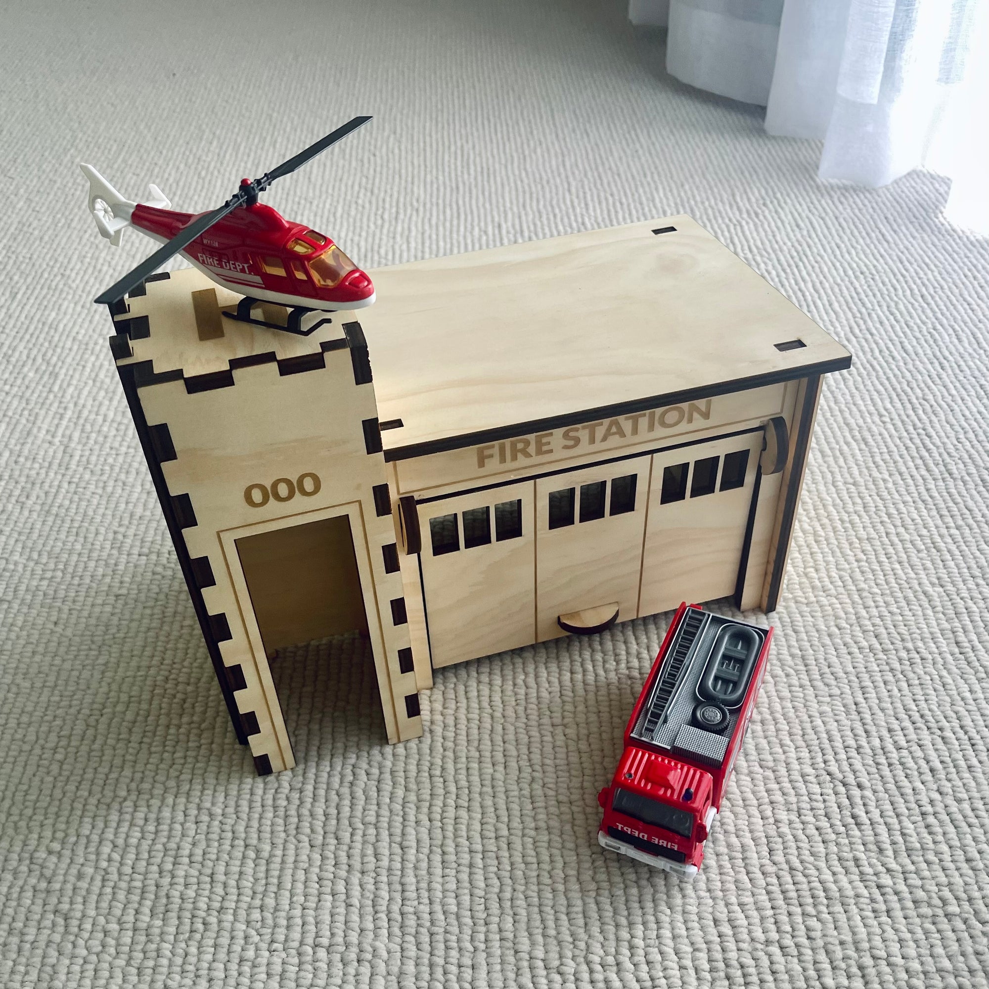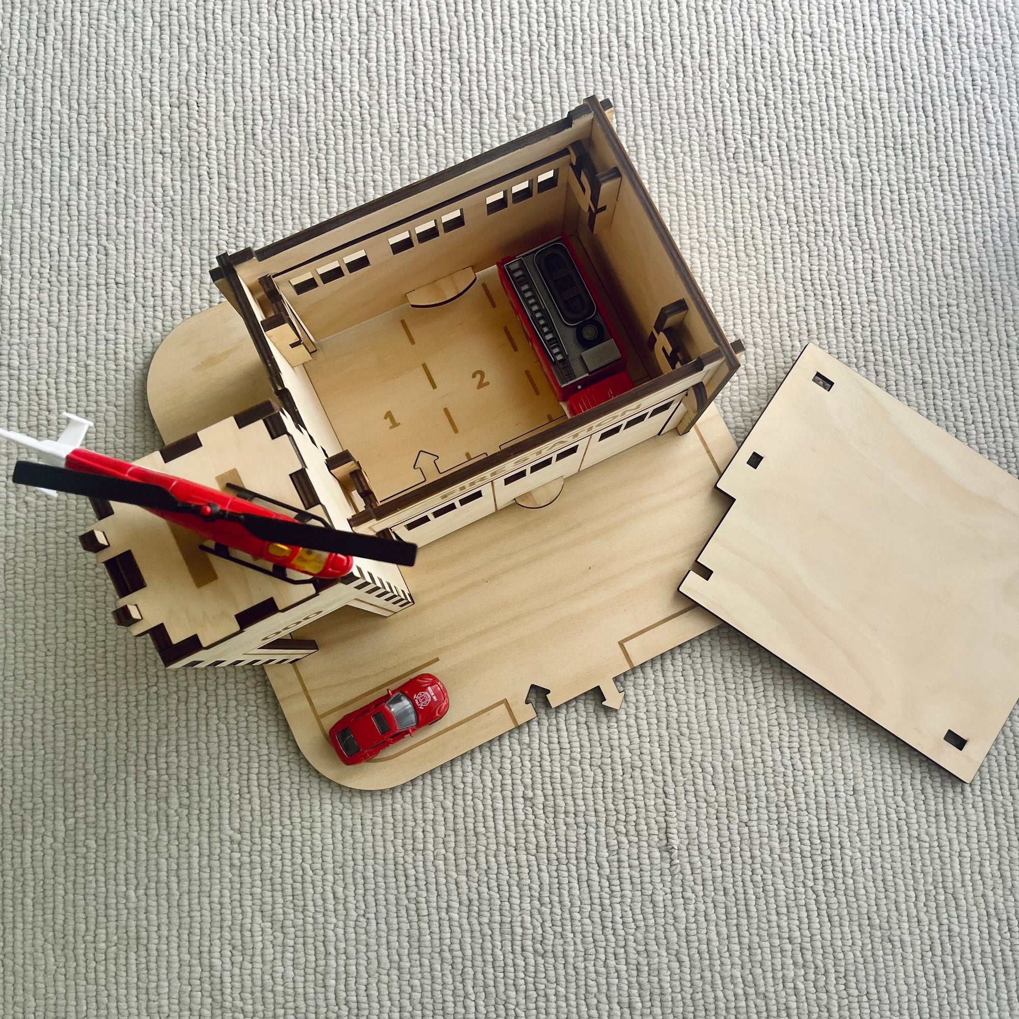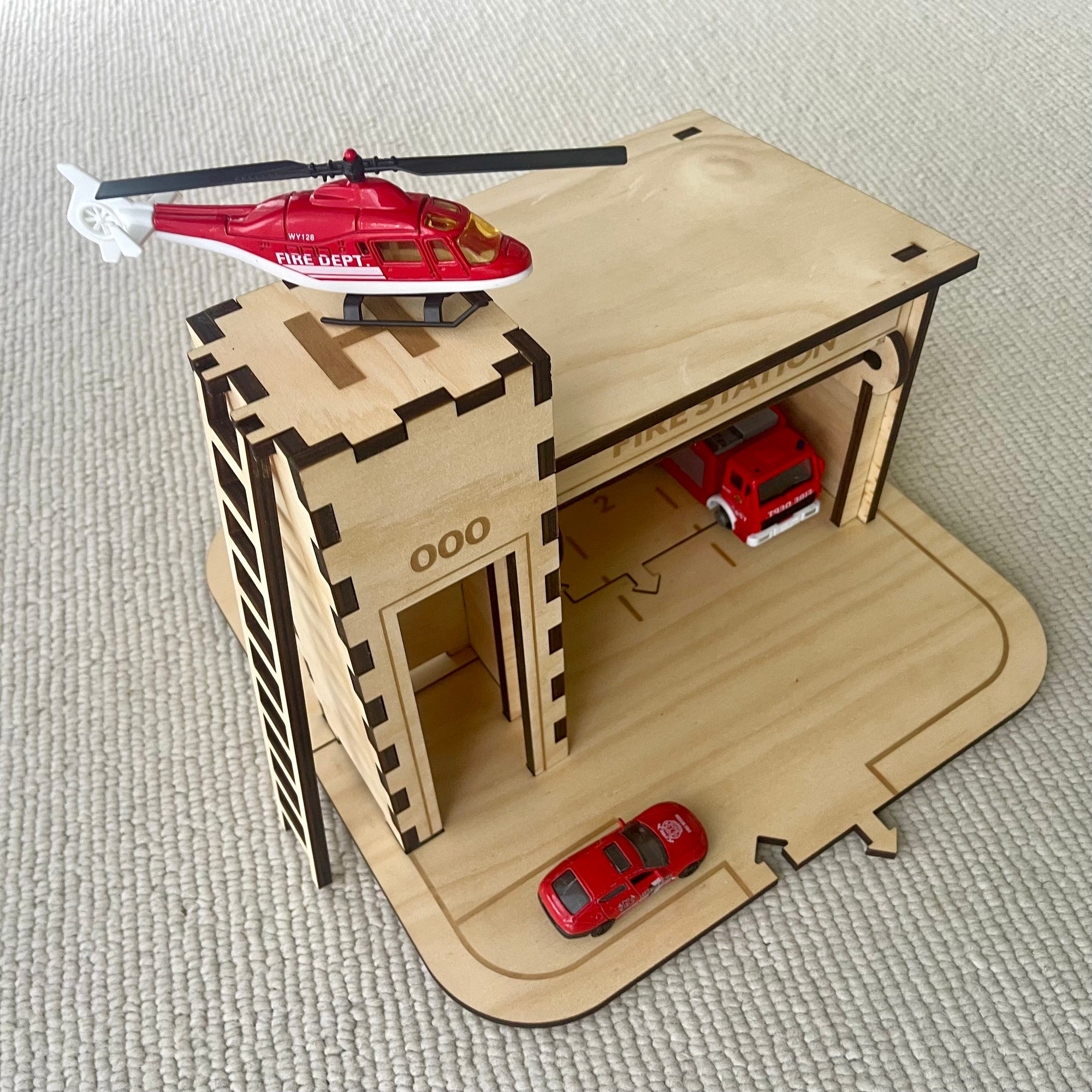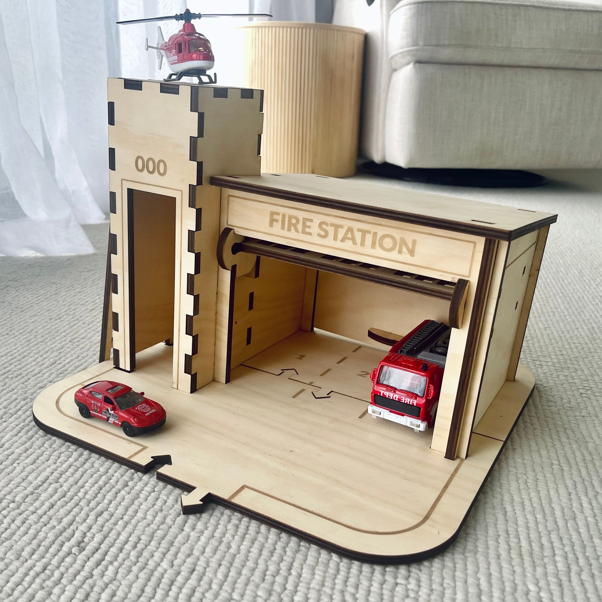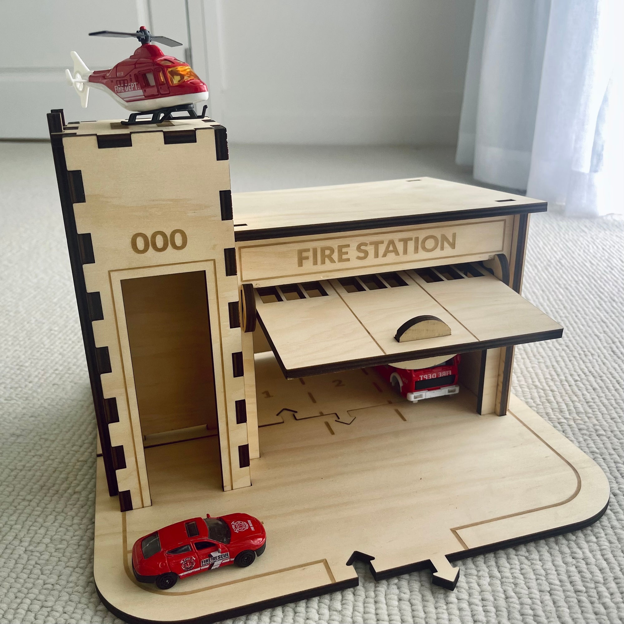 All of our buildings can be used with or without the base plate. Create massive cityscapes connected with our road tracks or play with the Fire Station on it's own.